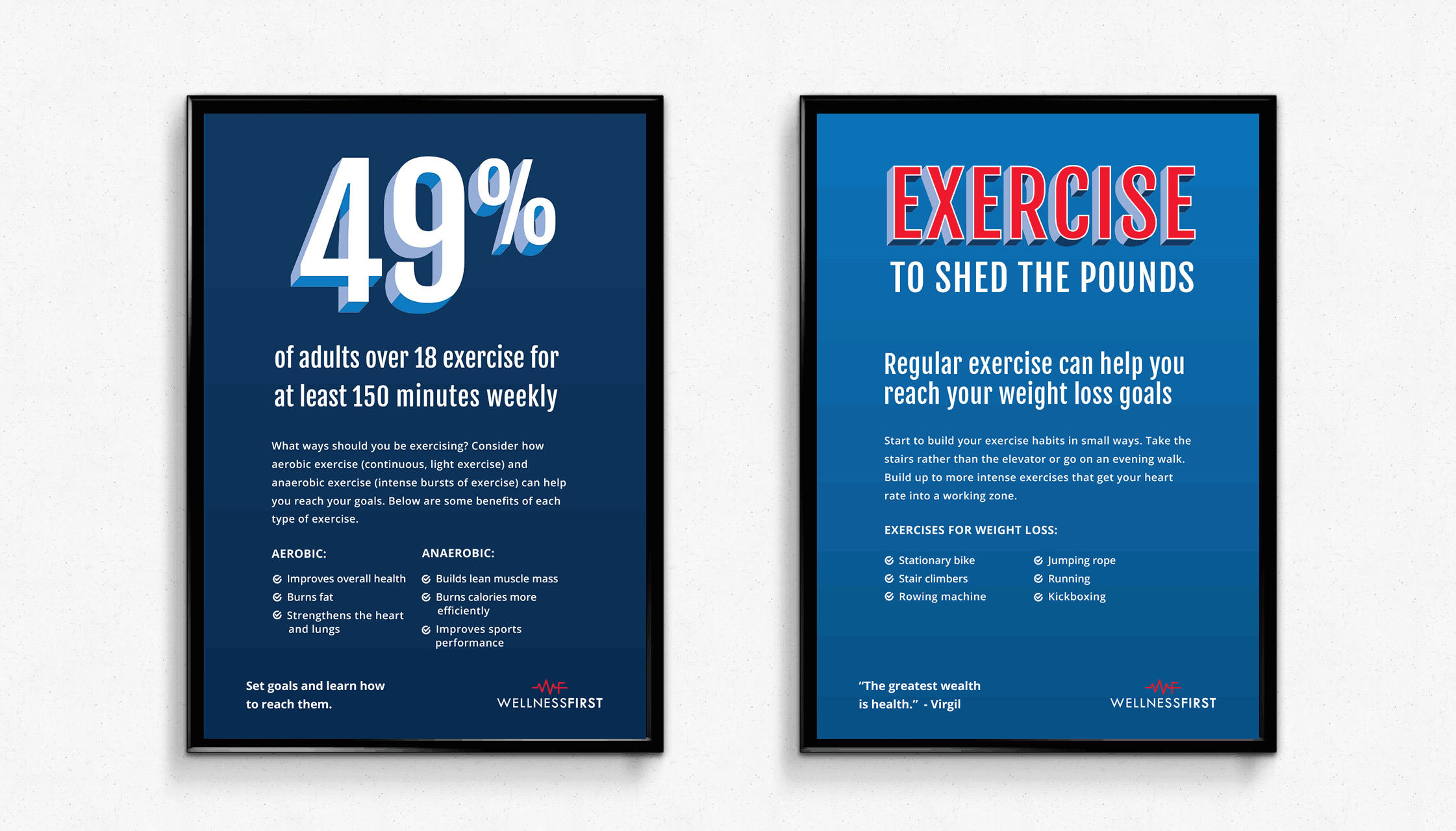 Wellness First also requested informational posters designed so that staff members using the workout room could be informed about their health.